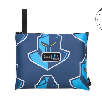 NRL Gold Coast Titans x Nakie 1 × Recycled Sand Free Beach Towel Dimensions: 160cm × 90cm Weight: 740 grams 1 × Water Proof Storage Bag Dimensi...