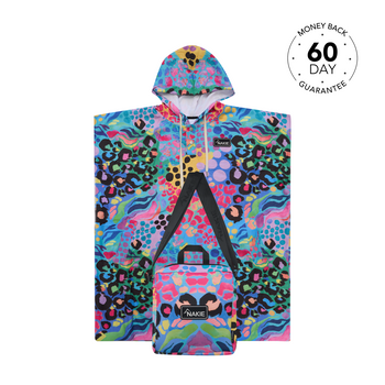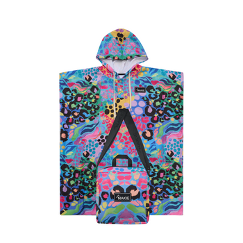 All of our Nakie beach towels come with a compact, water-resistant neoprene bag for easy storage. The Recycled Beach towel storage bag is 25cm × 20cm x 4cm. The XL storage bag is 24cm × 24cm x 9cm. The hooded towel storage bag is 22cm × 22cm x 8.5cm.