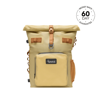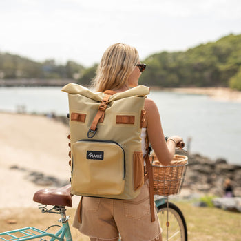 Sold out $233.00 Sahara Sand - Recycled Cooler Backpack Cooler Backpack Dimensions: Height 63 cm x Width 15.5cm x Length 32cmSize: 30L LitresWeight: 1.6 kg