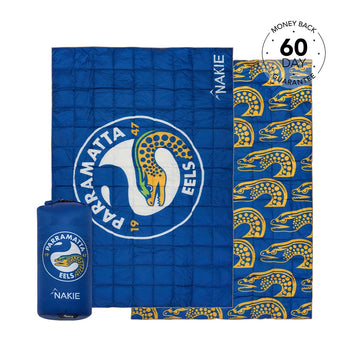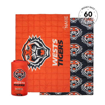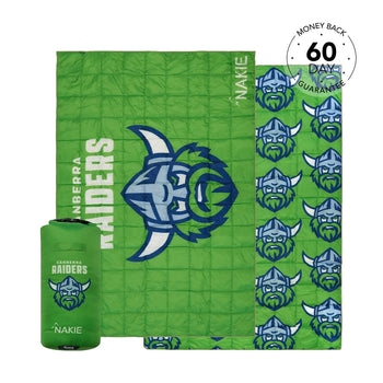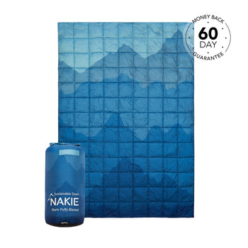 Whilst our Nakie blankets are not 100% waterproof they are water resistant. he blankets outer shell is made from 90/10 DWR fabric - this means that when our blanket was sprayed with water in testing 90% of the fabric remained dry AND the blankets water resistance was unchanged after 10 washes! This also provides excellent stain resistance. In most cases water will bead off your blanket rather than being absorbed, unless it is fully submerged or completely saturated. This is usually more than enough protection from the elements and the blanket will easily handle some light showers or condensation.